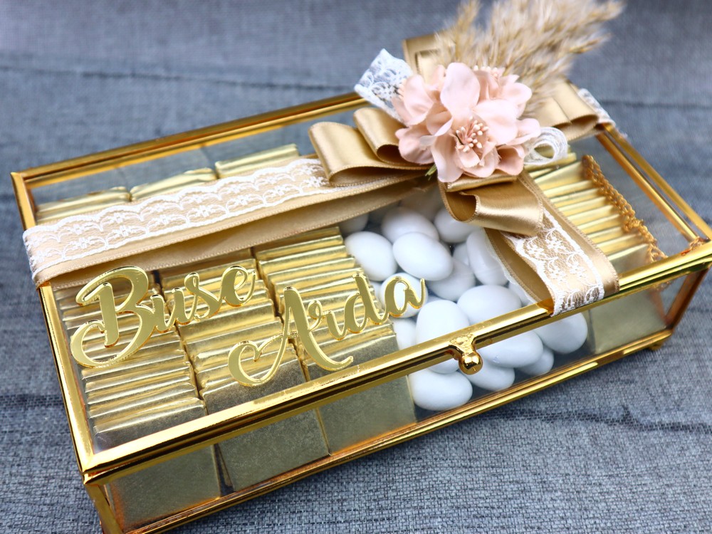 - Kişiye özel tasarlanmış, çiftin isimlerinin veya tarihinin yazılı olduğu çikolata kutuları şık bir dokunuş sağlar.